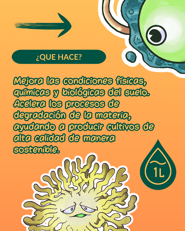 Consorcio de microorganismos benéficos y nativos, reproducidos en medio líquido.