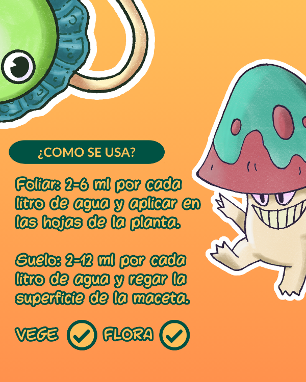 o Foliar: 2-6 ml por cada litro de agua y aplicar en las hojas de la planta.